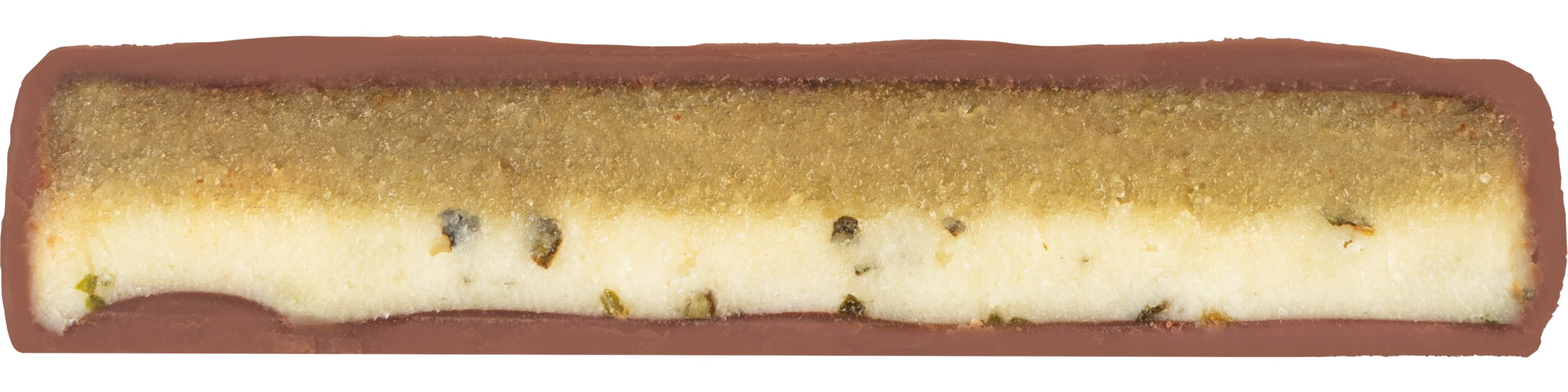 Deze chocolade, omhuld met delicate donkere melkchocolade met een cacaogehalte van 50%, belooft een echt "lentegevoel" voor het gehemelte: