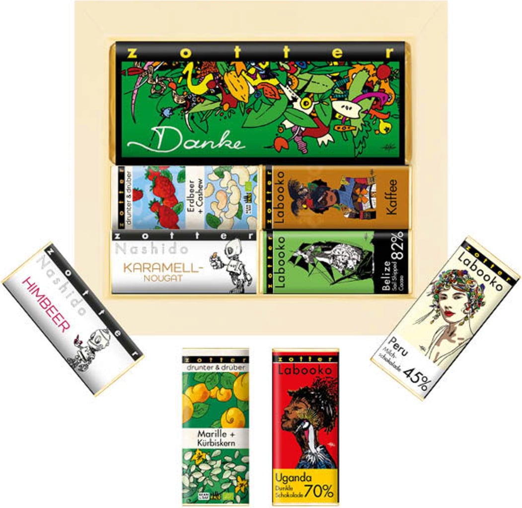 Deze Zotter mix bestaande uit negen smeltzachte chocoladespecialiteiten is de perfecte manier om dankjewel te zeggen tegen de dierbaren in je leven en ze een kleinigheidje te geven.