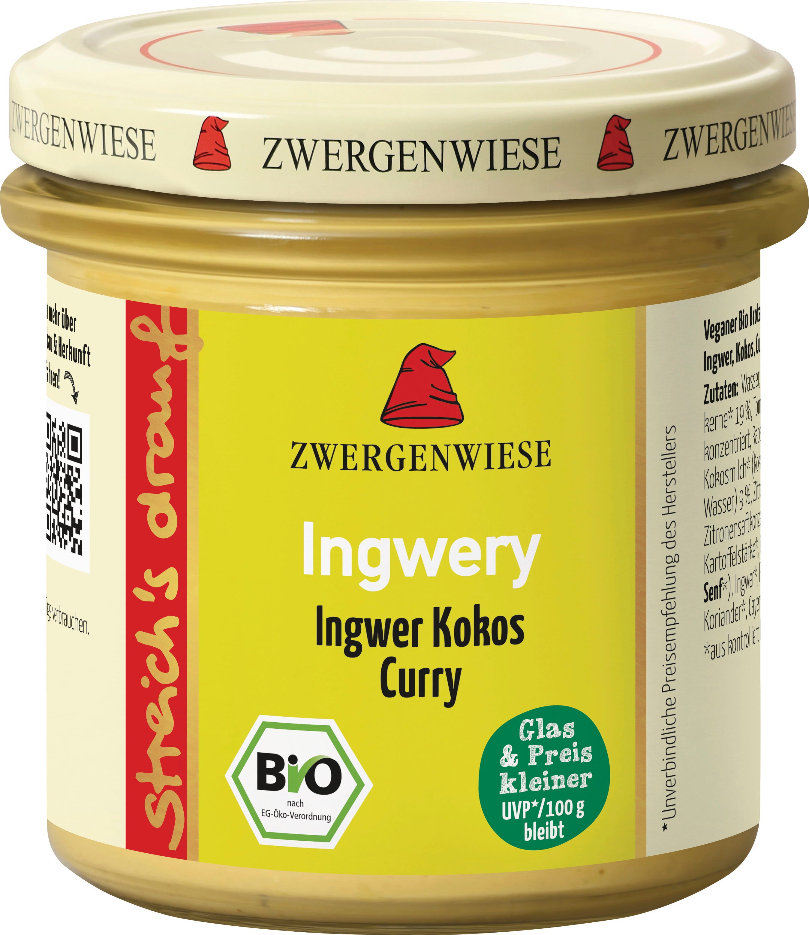 De pittige smaken van gember, cayennepeper en uien worden in de Ingwery spread verzacht door lichtzoete kokosnoten en harmonieus afgerond met exotische kerrie en koriander.